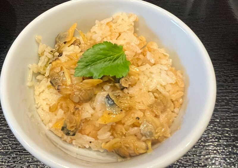 「濃厚牡蛎つけそば」の出汁はカキの風味満点の濃い味で、これに腰がある中太ストレート麺がよくからみ「貝好きにはたまらない一品」と香村さん。また途中でレモンを絞れば爽やかな味変が楽しめるとのこと。トッピングのチャーシューと煮卵も「バッチリです」という。さらにアサリの風味たっぷりの「貝めし」も納得の味で「まさに貝づくしのランチメニューです」と大満足。
