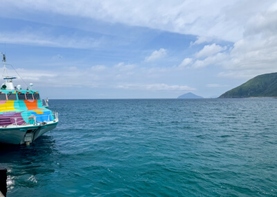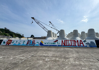 「新島」とは東京都心から南に約160kmに位置し、東京竹芝からジェットフォイルで2時間20分ほど、調布飛行場からは30分ほど。そして、下田からはフェリーで3時間ほどで到着できる、比較的アクセスのよい離島です。