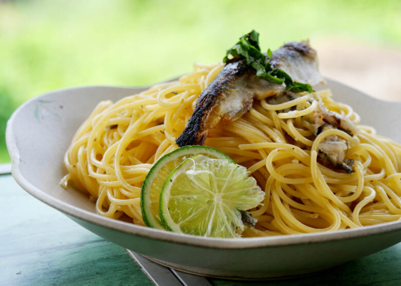 今回のターゲットは、清流を代表する魚「アユ」です! 夏に旬を迎え、爽やかな香りが特徴的なアユ。定番の食べ方は塩焼きや甘露煮、フライなどですが、そのほかにもさまざまな食べ方で楽しめるのもアユの魅力! 今回はアユを使ったパスタを作ります。