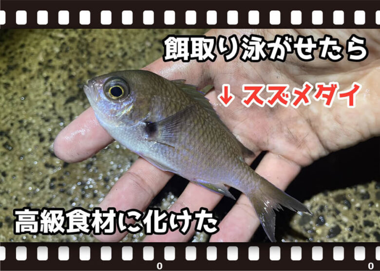 群れでいることが多く、かんたんに釣れる「スズメダイ」。活発にエサを取るスズメダイの高い遊泳力に目を付けたDKさんは、この厄介者を「泳がせ釣り」のエサとして使うことを思いついたようです。