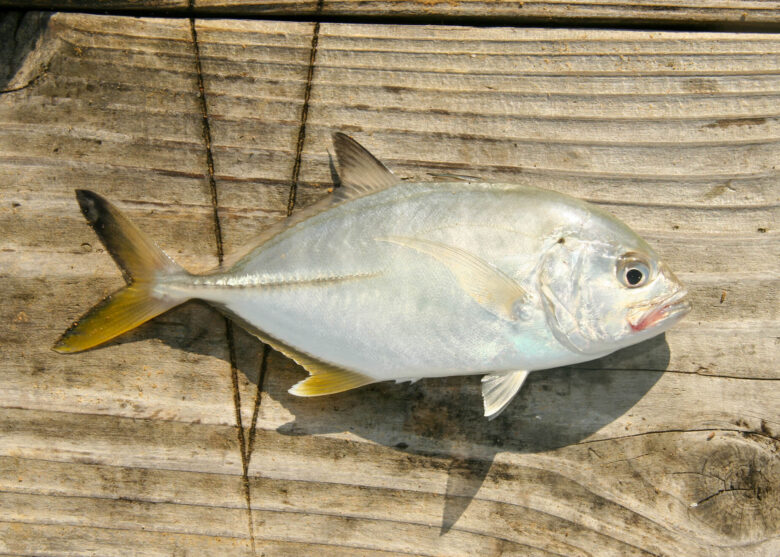 ところがよく似た平べったいアジ科の魚であるシマアジに対しては、小型の幼魚であってもメッキという呼び方をすることはなく、さらにブリ、ヒラマサ、カンパチなどのアジ科の魚たちもメッキと呼ぶことがないのはご存じの通りだ。