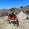 都井岬では、国の天然記念物に指定されている「御崎馬(みさきうま)」が自然のままの姿で暮らしています。キャンプ場周辺では、日中から夕方にかけて、草を食む姿やゆっくりと歩く様子を見かけることがあります。
