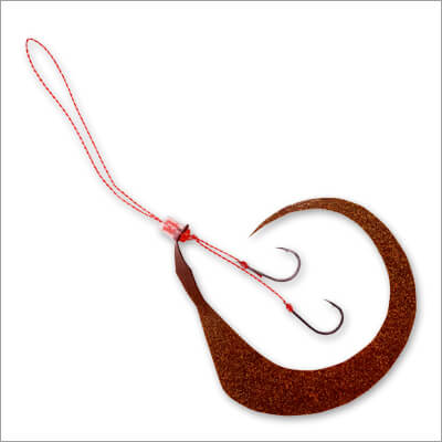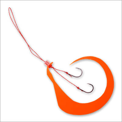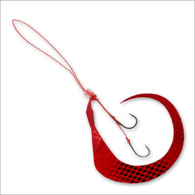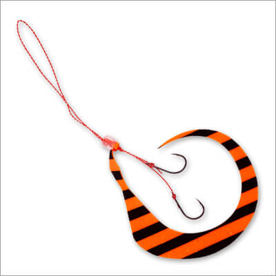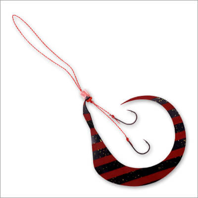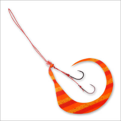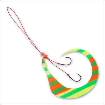 有田さん:「ナイトゲームでは船の灯りが明るいので、その光を蓄光する形になります。また、今回のゼブラ模様ですが、単に白い部分が光るだけではありません。ラバー全体に蓄光剤を練り込んでいるため、色が付いた部分も含めて「全方位」で発光します。水流ではためく際に明滅効果(コントラスト)が生まれ、単色の蓄光よりも複雑で生き物らしい拡散アピールが可能です。もちろん、デイゲームでも深場やローライトな状況でしっかり効いてくれます」