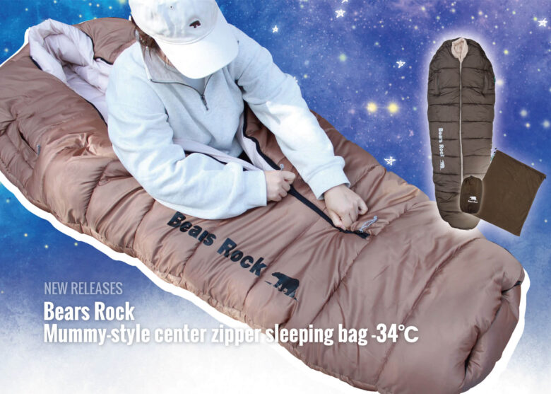 使う人に寄り添った製品作りを心掛けているBears Rock 株式会社(本社:広島県広島市、代表:梶谷浩史)は、冬キャンプでも寒さを気にすることなく、朝まで快適な眠りをサポートする高保温モデル【Bears Rock マミー型センタージッパー寝袋 -34℃】を展開しています。足元までしっかりと包み込む「足元あったかフリース」を備え、冷えやすい部分を重点的に保温。厳しい寒さの中でも、安心して眠れる環境を提供します。