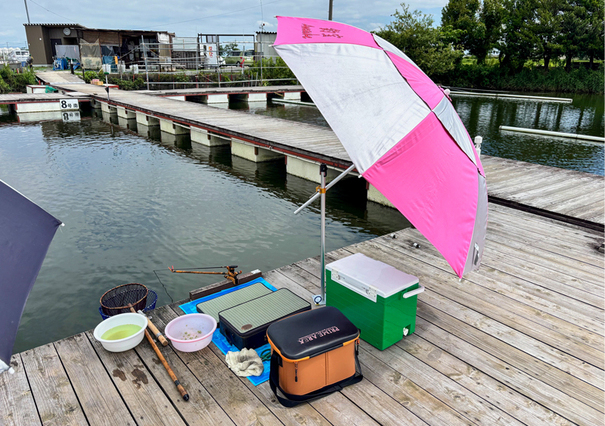 東西約100mの広さを誇る池に、9つの桟橋と257席の釣り座を備えた、東海地区最大級のヘラブナ釣り施設。収容力は250人以上と圧倒的で、ゆとりある釣りが楽しめる。店主自ら厳選した高品質なヘラブナが放流されており、魚の引きやコンディションも折り紙付きだ。周囲は自然豊かな田園地帯に囲まれ、四季の移ろいを感じながら、心ゆくまで釣りに没頭できる環境が整っている。