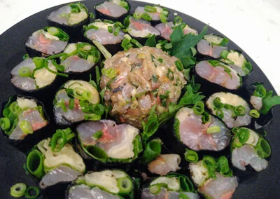 この記事では船釣りで釣った「アジ」を美味しくいただく料理レシピをご紹介! 今回はそんなアジを使った「ガリしそ巻き」です。