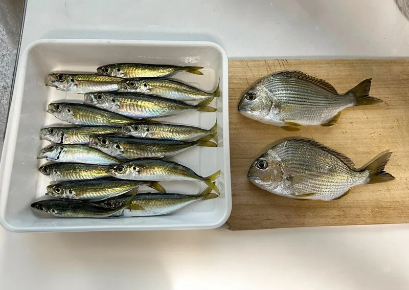 当日釣れたアジはなかなか嬉しいサイズです。ヘダイは4尾釣れたのですが、食べる分だけお持ち帰り。自宅に戻ってから、釣果をさっそく調理することにしました。