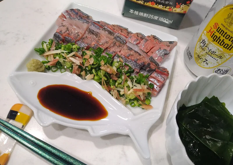 そんななか、「明らかに脂の乗りが違う」個体を発見! 皮を引いたあとの身はテカテカに輝き、包丁にも脂が付くほど…。「こ、これは美味いやつに違いない!」ということで、この1尾だけはその日のうちにお刺身にして堪能することに。これは透明なお酒がすすみますね!!
