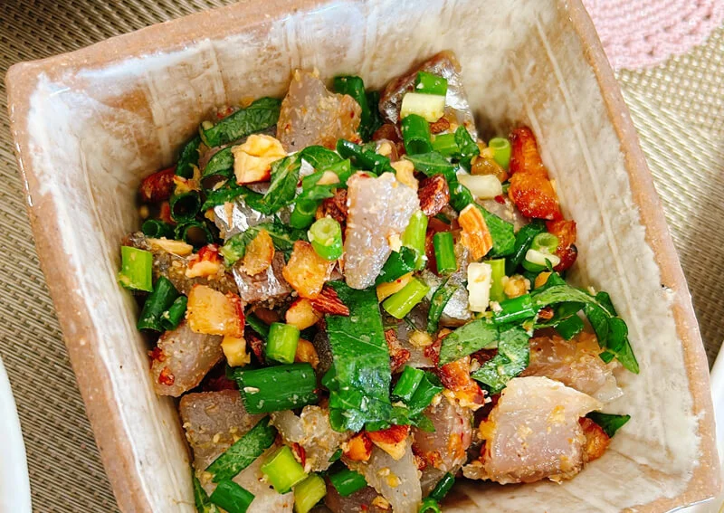 - ② ①の熱が冷めたら、刻んだアジと材料をお好みで混ぜたら完成です