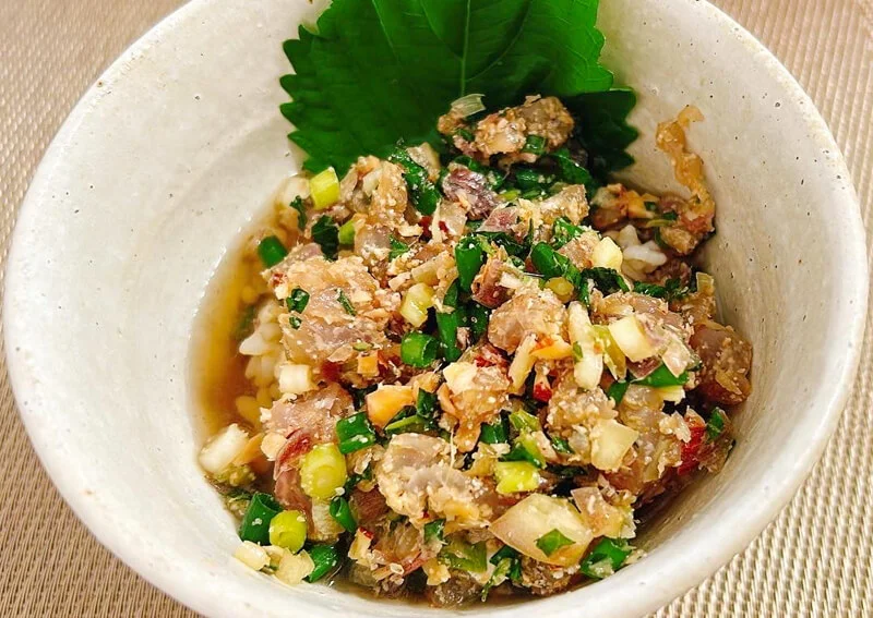 そして、もちろんそのまま食べても十分美味しいのですが、アレンジとしてこのタタキをご飯に乗せて夏場は冷たい麦茶を、冬場は温かいお茶またはお出汁をかけて食べるもの美味です。おススメですよ!