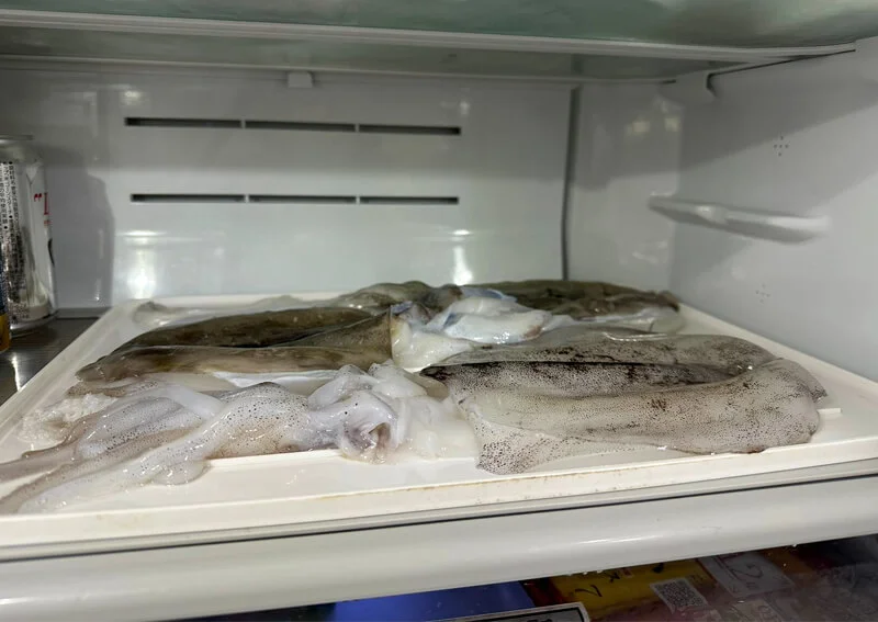 釣ってきたイカを夜にさばくことが多い私は、そのままラップをかけずに一晩、冷蔵庫へ。