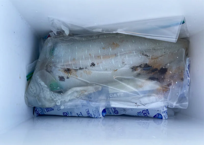 食べないものは海水のまま丸ごとラップし冷凍保存しますが、やはり釣り人の特権として鮮度抜群なイカは刺身で食べたいですよね。