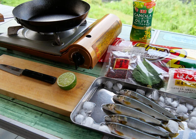さて今回は、釣った天然アユを使った「アユと大葉の和えパスタ」を作っていきます。
