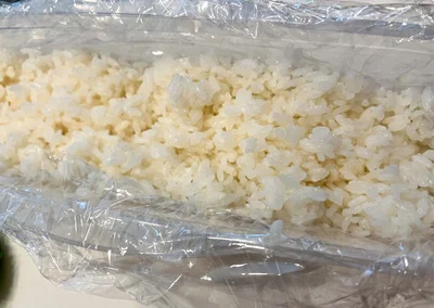 ご飯は酢飯用にと昆布を1枚と塩をひとつまみ入れ、気持ち少ない水量で炊きました。炊き上がったら寿司酢を混ぜ、冷ませば酢飯の完成です。