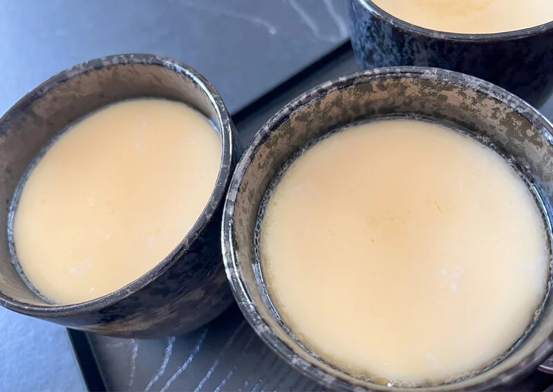 ついでに、漬けた刺身の切れ端で作った茶碗蒸しも添えました。こちらもブリの旨味が出て美味しく仕上がりましたよ。