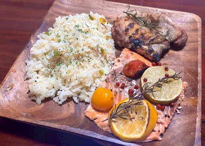 「シダープランクサーモン」とは、北米では定番の調理法で、杉(シダー)の板にサーモンを載せ、炭火やグリルでじっくり焼き上げる料理です。シダーの木が香ばしく燻され、魚にほのかな木の香りが移り、家庭ではなかなか出せない「ワイルドで上品な味わい」が楽しめます。