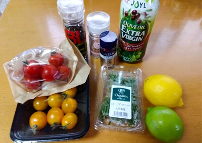 - ・レモン 1個(スライス3~4枚、半分を使用して搾り汁に)