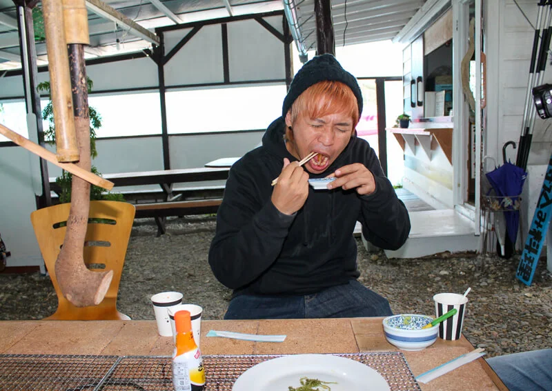 ところが、である。その食堂「さかなかなさ」のご主人である具志堅勝文さん(あの具志堅用高さんの遠縁だとか)は、文句どころかニコニコしながらダツをさばいてくれた。