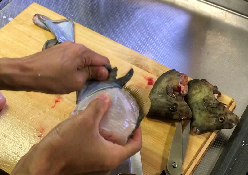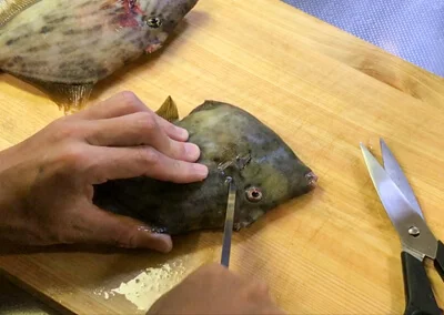 まずは、釣れたカワハギのさばき方をご紹介します。