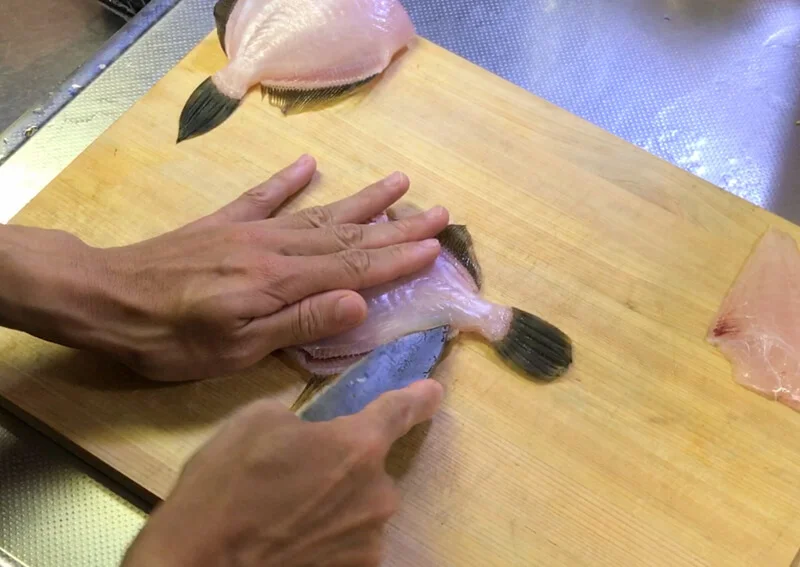 夏は身! 冬は肝を楽しめるので、カワハギの刺身は1年を通じて味の変化を感じることができるオススメの一品ですよ。