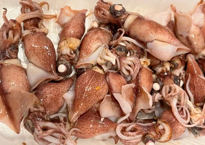 また、ついでに購入したのは佐賀県小長井のアサリ。小長井のアサリもこの時期は身入りがよく、味が濃いのでおすすめです。そして、富山産のホタルイカも購入。こちらも九州では採れない食材ですね。