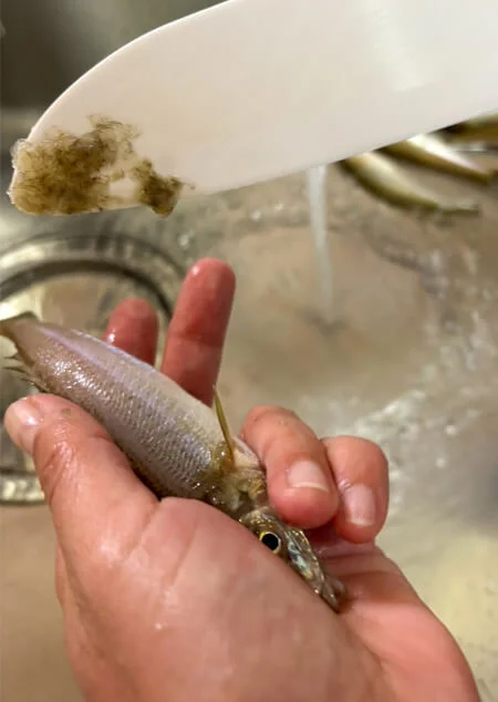 初めて釣れたキス!! そしてキスといえば天ぷらです! 自宅に持ち帰って天ぷらに挑戦することにしました。YouTubeでさばき方を見ながらの挑戦です。