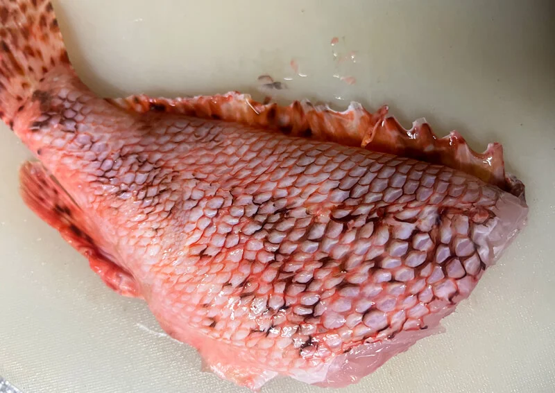 鬼カサゴは大きめのサイズが釣れたので、身が分厚くて食べ応え抜群でした。また、ふっくら柔らかい食感で甘味も感じられました。背ビレの処理さえしっかりすれば、とても美味しいお魚ですね。