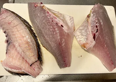 ちなみに、今回の養殖ダイには黒い筋が多く見られ、初めてだったので調べたところ何も問題ないとのこと。養殖ダイにはたまに見られるそうですが、知らなかったので勉強になりました。
