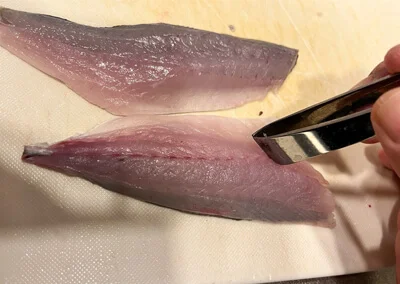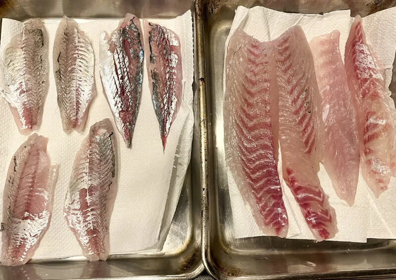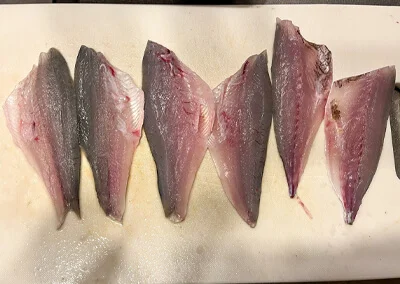 それぞれ3枚おろしにし、アジ・セイゴは小振りなので中骨を抜いて下準備。