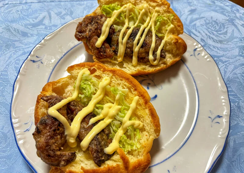 また、翌日は昨晩作ったソウダカツオの竜田揚げをクロワッサンにサンドして、「ソウダカツオバーガー」を朝食に!