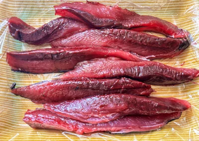 釣った魚を食べるまでが釣りの楽しみ! 釣ってきたソウダカツオは釣り場で血抜きをして、帰宅後に下処理を済ませ3枚におろしてから、冷蔵庫で冷やしました。まるで肉のようなボリューム感で、メニューは何にしようか迷っちゃいますね(笑)。