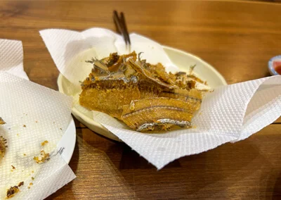 そして天ぷらのついでに、骨は素揚げにし「骨せんべい」に! あますことなく楽しめるのもタチウオの魅力です。