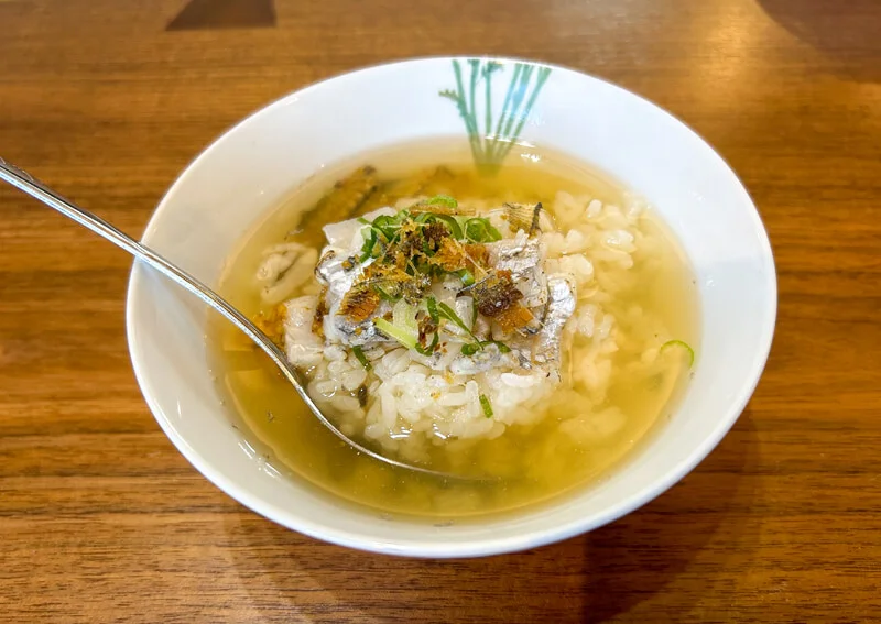 翌朝は、余った刺身や骨せんべいを粗くくだいたものと一緒にした「お茶漬け」も絶品です! 一度試してみては?
