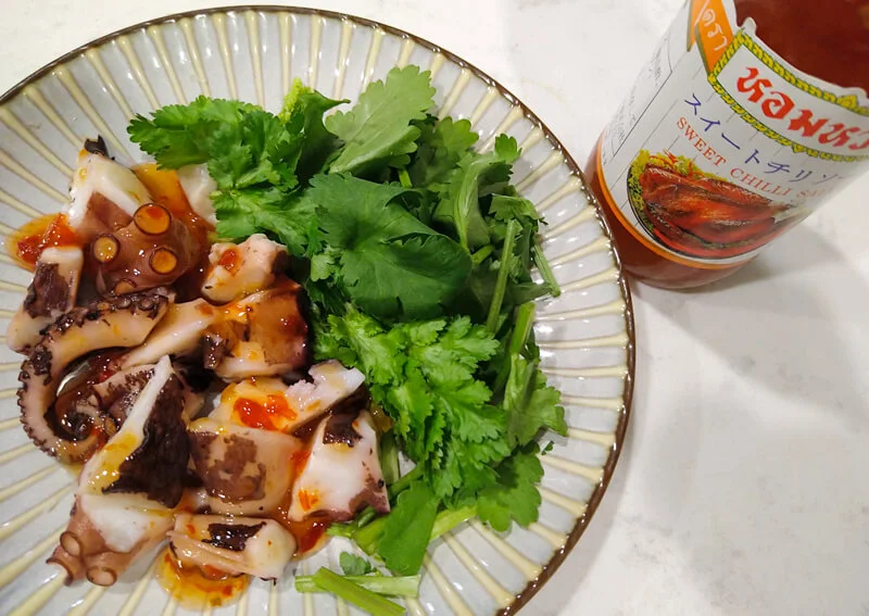 生春巻きを食べるとき以外あまり見ることないスイートチリソース、実はマダコに合うんです!